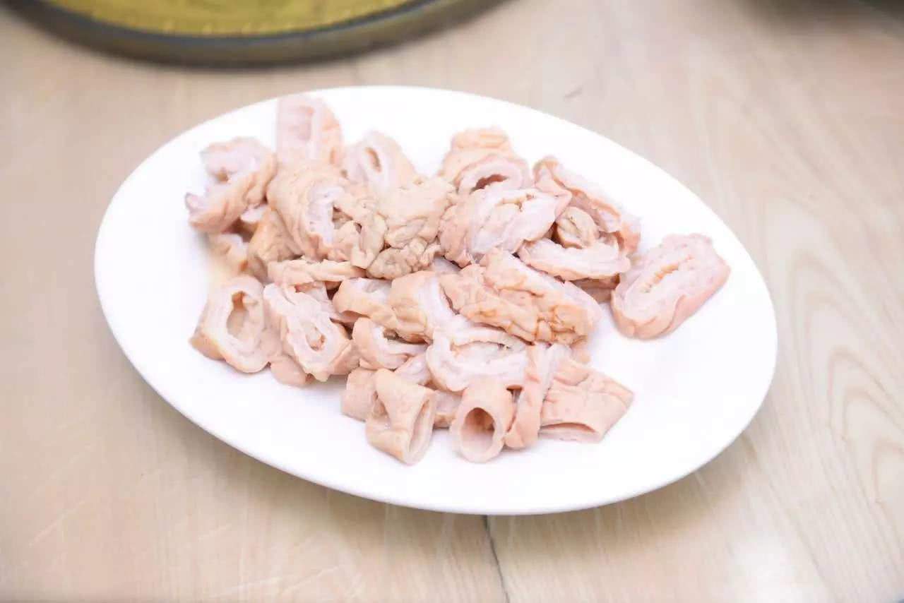 Khi mua lòng về, bạn đem lộn trái nhằm lọc hết phần màng mỡ bên trong. Tiếp đến, dùng muối hạt bóp thật kỹ phần lòng này. Sau khi làm sạch, bạn đem rửa lại dưới vòi nước mạnh.